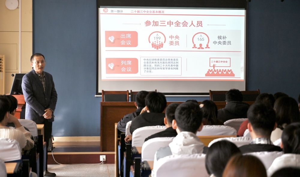 为深入学习贯彻党的二十届三中全会精神,激发奋进力量,10月30日上午,金沙国际娱乐城 党委书记王勇讲授“学习党的二十届三中全会精神”专题党课,金沙国际娱乐城 全体学生党员参加。