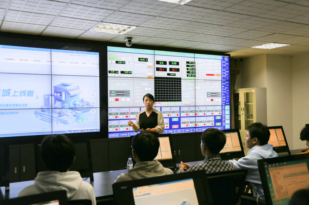 在工程仿真中心,大陆股份副总经理李少敏向济南大学金沙国际娱乐城 师生们介绍并演示了机组虚拟DCS仿真系统,讲解了工业互联网仪表平台核心服务能力。