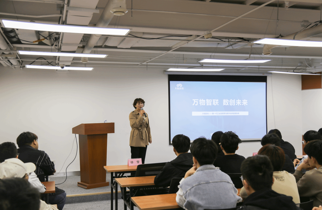 大陆股份副总经理李少敏从公司发展历程、服务能力、核心业务等方面介绍了大陆股份的基本情况,重点向师生们介绍了工业互联网标识解析体系建设及应用推广情况,展示了大陆股份为各行业提供的解决方案,加深了同学们对工业互联网仪表平台的认识和了解。