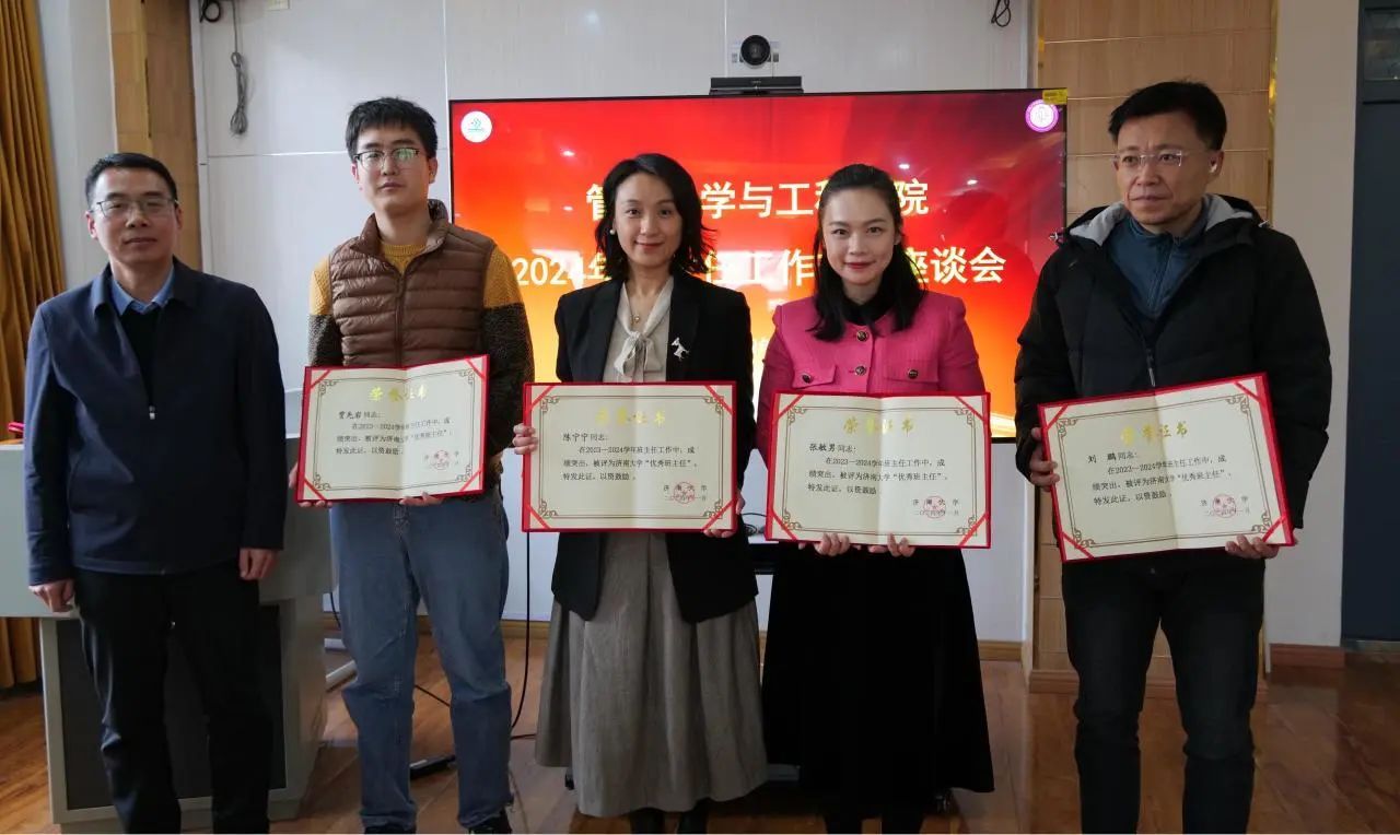 交流座谈环节,数据2003班主任张莹、信管2102班主任杜培林、信管2402班主任王玉军等老师先后交流发言,分别从如何做好学生考研规划帮扶工作、如何对学生进行分层分类管理、做好班主任工作的初心使命等方面,分享了班主任工作的经验做法。金沙国际娱乐城 党委副书记、副院长郭华总结了金沙国际娱乐城 2024年金沙国际娱乐城 学生工作的整体情况,阐述了2025年度金沙国际娱乐城 学生工作思路和打算。下一步,金沙国际娱乐城 将从筑牢安全底线,守护学生安全;因材施教,做好学生的良师益友;严管厚爱,打造优良学风长效机制等方面持续突破发力,进一步全面做好学生思想政治教育工作,努力提高服务学生成长成才的能力和水平。
