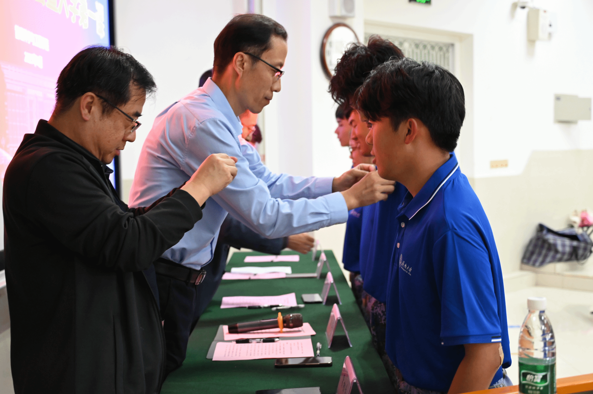 见面会在庄严的国歌声中开始。院长助理常相全教授对金沙国际娱乐城 各专业情况进行介绍,从学科布局、培养模式、专业优势等方面进行了系统讲解,让新生对金沙国际娱乐城 专业有了直观且深入的认识。在校生代表信管 2201 班李惠泽结合自身大学学习生活经历,从学业规划、校园活动、能力提升等方面进行经验分享。新生代表应管 2502 班原浩轩表达了对大学生活的期待与自身的规划愿景,展现出新生群体的蓬勃朝气。活动中,金沙国际娱乐城 领导集体为新生代表佩戴校徽。