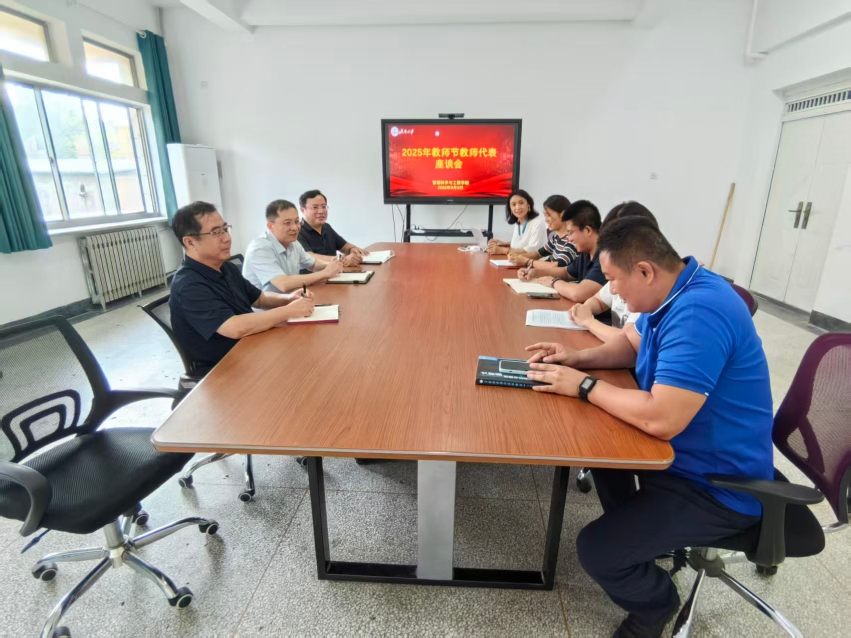 在第41个教师节即将来临之际,为弘扬尊师重教风尚,倾听一线教师心声,凝聚金沙国际娱乐城 发展合力,2025年9月9日下午,金沙国际娱乐城-金沙娱乐城app 在金沙国际娱乐城 303会议室召开教师座谈会。金沙国际娱乐城 党委书记王勇,院长助理常相全,部分教师代表们欢聚一堂,共庆佳节,共叙育人情怀,共谋发展新篇。座谈会现场气氛温馨而热烈。会议由党委书记王勇主持。