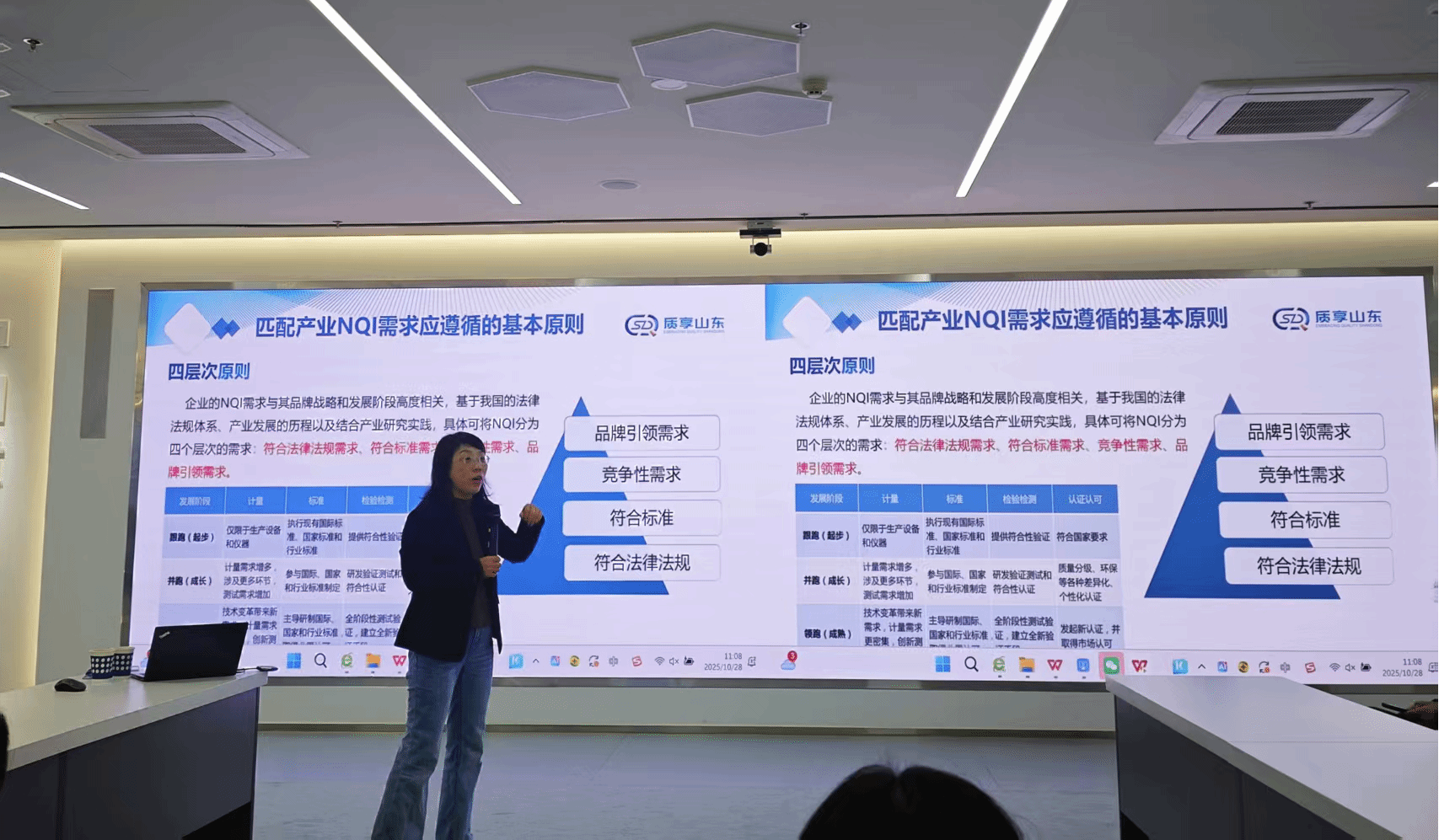 10月28日上午,标准化工程专业全体学子在系主任代婷及于文涛老师的带队下,走进山东省产品质量检验研究院,受到研究院泰山学者高翠玲主任及同事的热情接待。此次参访聚焦质量与标准化核心领域,师生们通过实地察看、互动交流等方式,多角度、深层次感知行业实践场景,直观领略质量管控与标准化工作的重要价值与独特魅力。