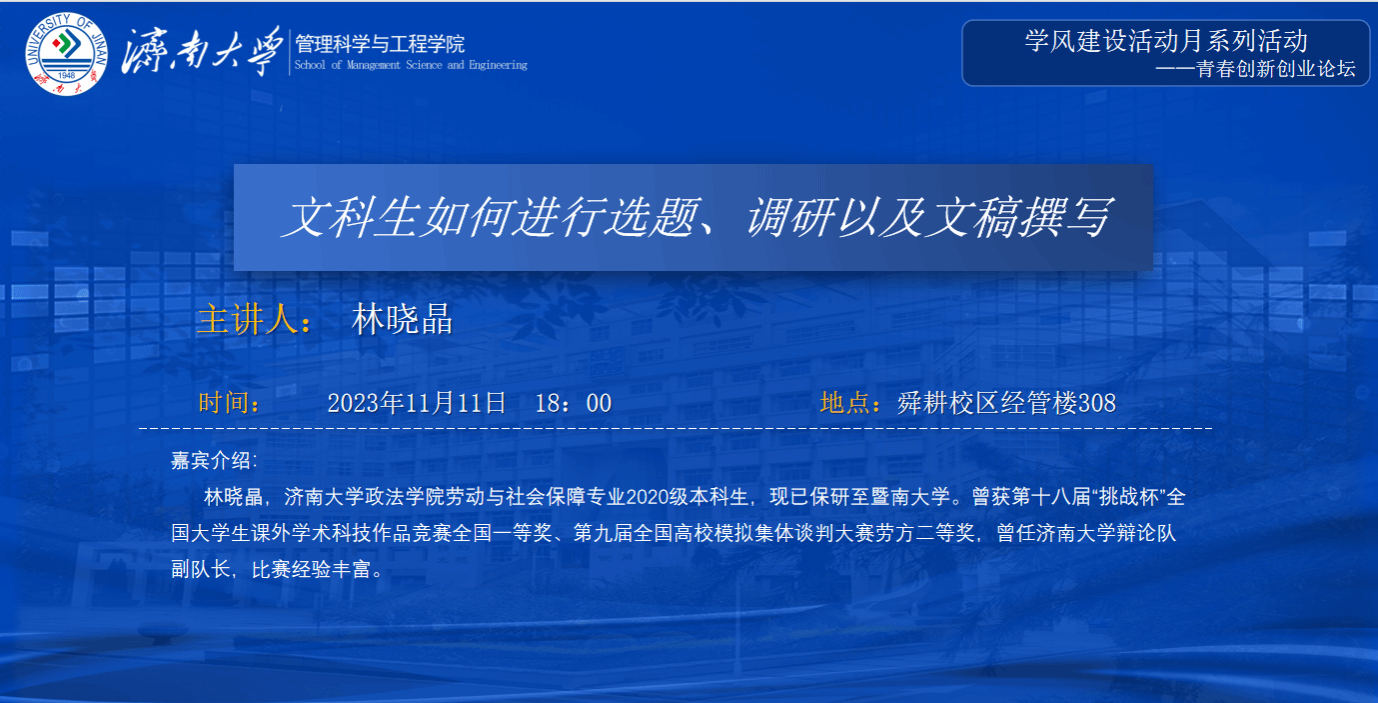 青春创新创业论坛——文科生如何进行选题、调研以及文稿撰写