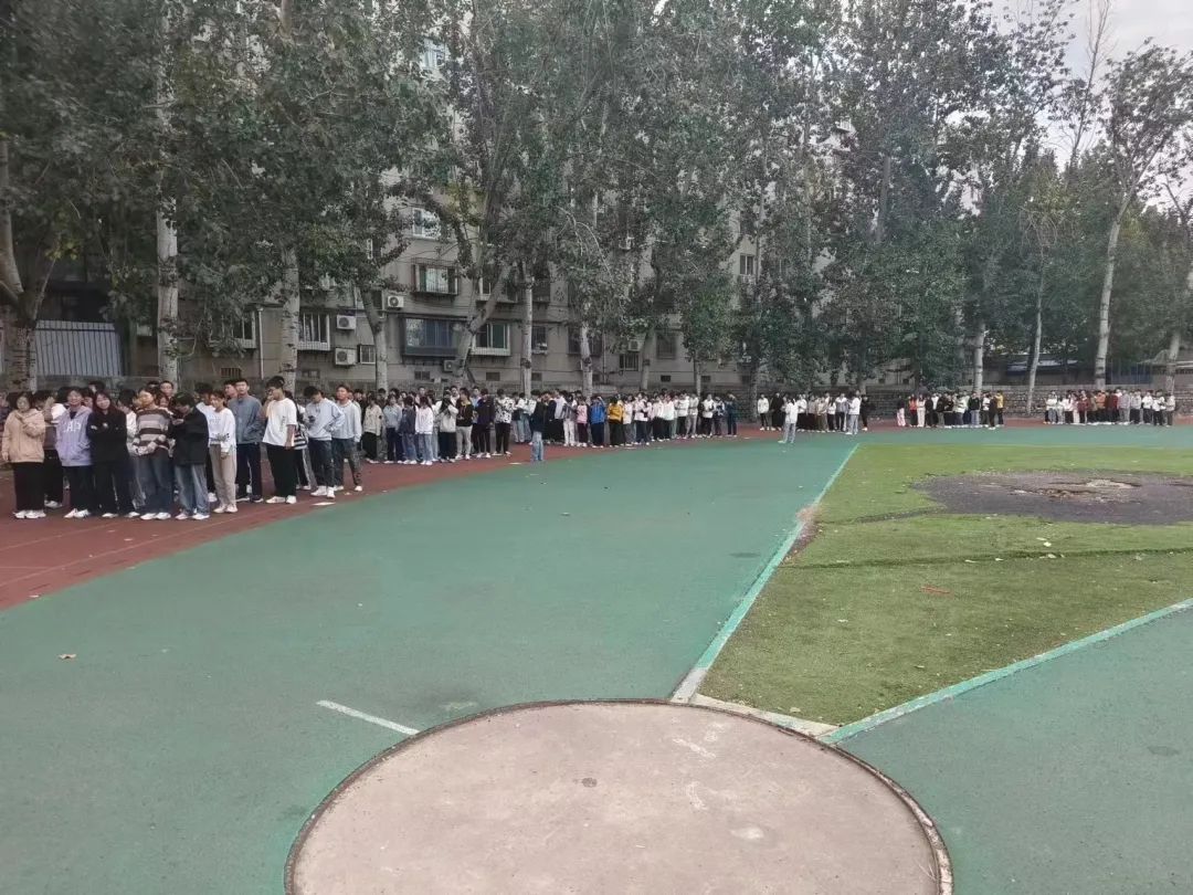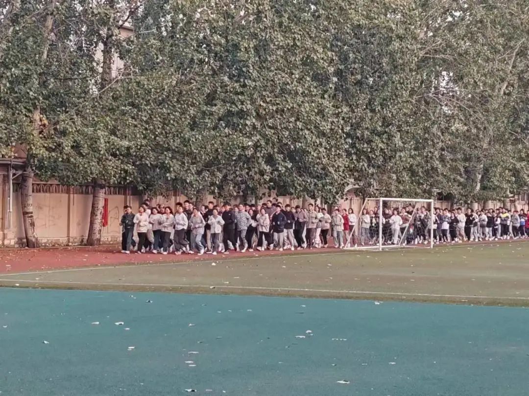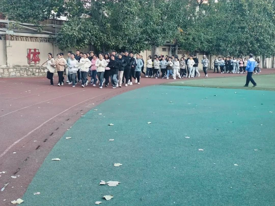 清晨六点四十五分,同学们于操场集结完毕,自发有序排列成队,经过人数清点后,哨声响起,跑操正式开始。一支支列队如山的队伍,如同一条条巨龙,蜿蜒前行,气势磅礴。同学们的口号铿锵有力,步伐整齐划一。汗水顺着脸颊滴落,但学生们仍昂首阔步,目光坚定,展现了同学们的活力满满的青春风貌和意志坚定的精神面貌。