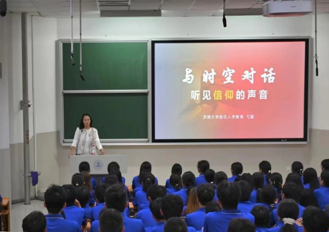 2024年9月9日,金沙国际娱乐城-金沙娱乐城app 2024级全体新生在舜耕校区第三教学楼201室迎来了一堂别开生面的入学教育。本次入学教育由济南大学物理科学与技术金沙国际娱乐城 学办主任弋媛老师讲授,课程主题为“与时空对话,听见信仰的声音”。