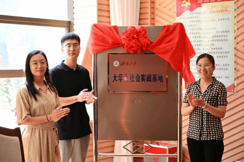 参观结束后,双方共同为“济南大学大学生社会实践基地”揭牌。莱芜战役纪念馆杨馆长对两院师生的到来表示热烈欢迎。他表示,莱芜战役纪念馆拥有丰富的革命历史资源和深厚的红色文化底蕴,此次与济南大学共建大学生社会实践基地,是推动红色资源与高校教育深度融合的重要举措。他希望双方精诚合作,共同做好革命教育资源的挖掘、整理、数字化保存与推广工作,将纪念馆打造成为大学生了解历史、锤炼品格、坚定信仰的重要课堂。