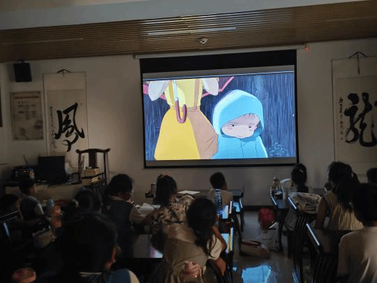 在翰墨轩文华书院,实践团成员与小朋友共同观看了日本动画大师宫崎骏的作品《龙猫》,为他们上了一堂生动的美育课。观影后,孩子们踊跃分享了自己的感受“龙猫就像我们身边的朋友”、“我们要关爱家人”、“一定要保护环境”……这些真挚的童言童语,不仅展现了孩子们对影片内涵的理解,也体现了优秀影视作品对青少年价值观的积极塑造作用。