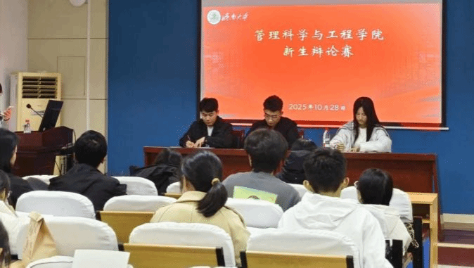 比赛现场气氛热烈,掌声不断。预赛阶段,选手们围绕当代青年关注的社会现象与人生哲理展开激烈辩论,展现出扎实的知识储备与敏捷的思辨能力。复赛环节,辩手们更是妙语连珠、才思泉涌,在观点碰撞中展现出卓越的语言组织能力和临场应变能力。决赛现场,双方辩手你来我往、针锋相对,既有理性的论证,也不乏感性的表达。他们沉着冷静、对答如流,充分展现了管科学子的风采。